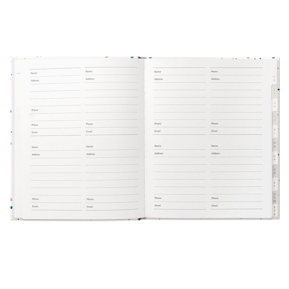 Is your address book full of crossings out? With alphabetical tabs, clever easy-change stickers and a storage pockets this one's simple to update - stay tidy and organised, forever. Pretty pink and blue spray cover with gold foil accents.