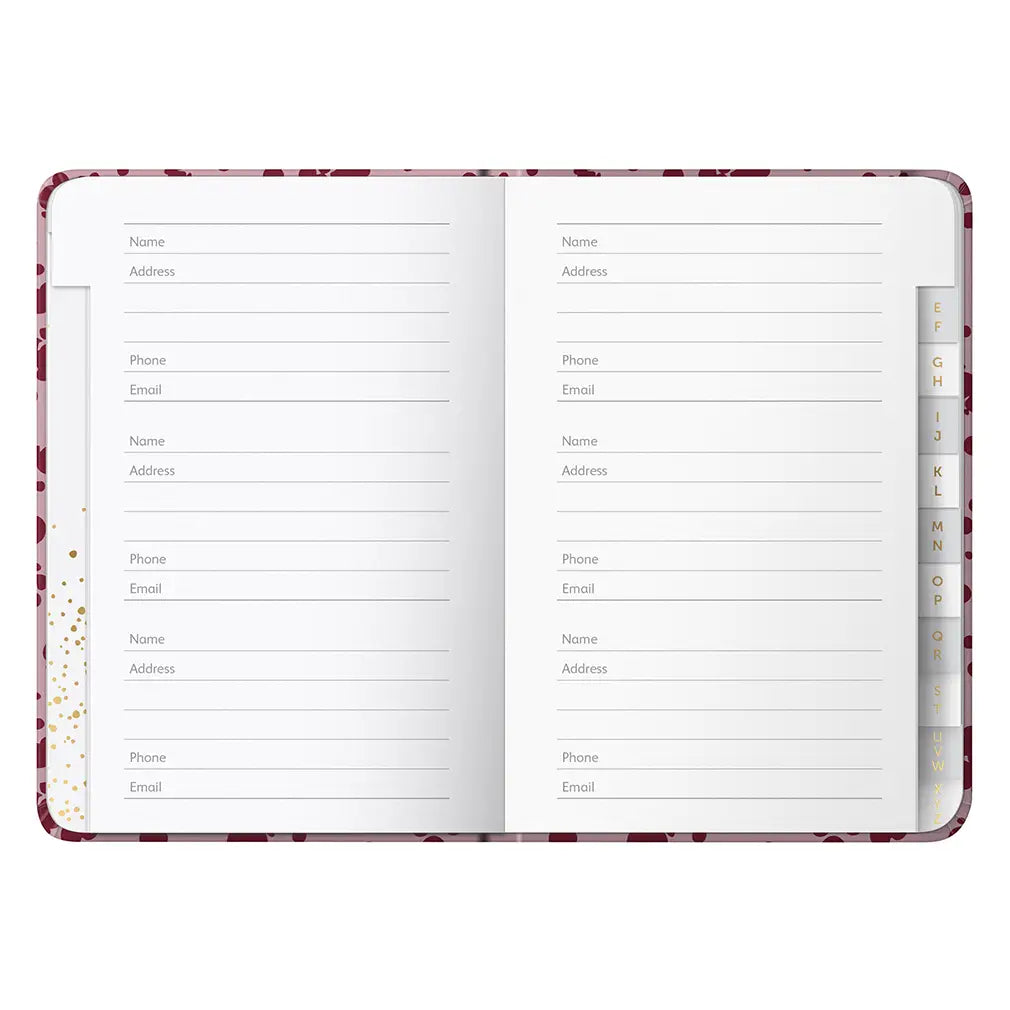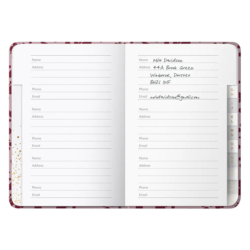Need somewhere for all that essential info? This perfectly compact handbag-sized book with burgundy spray designed cover has room for all your addresses and space for birthday reminders too. Beautifully designed with gorgeous foiled details throughout, it’s full of useful features including alphabetical tabs, a handy index, pretty stickers, ribbon markers and a storage pocket. Everything In one placed. Sorted!