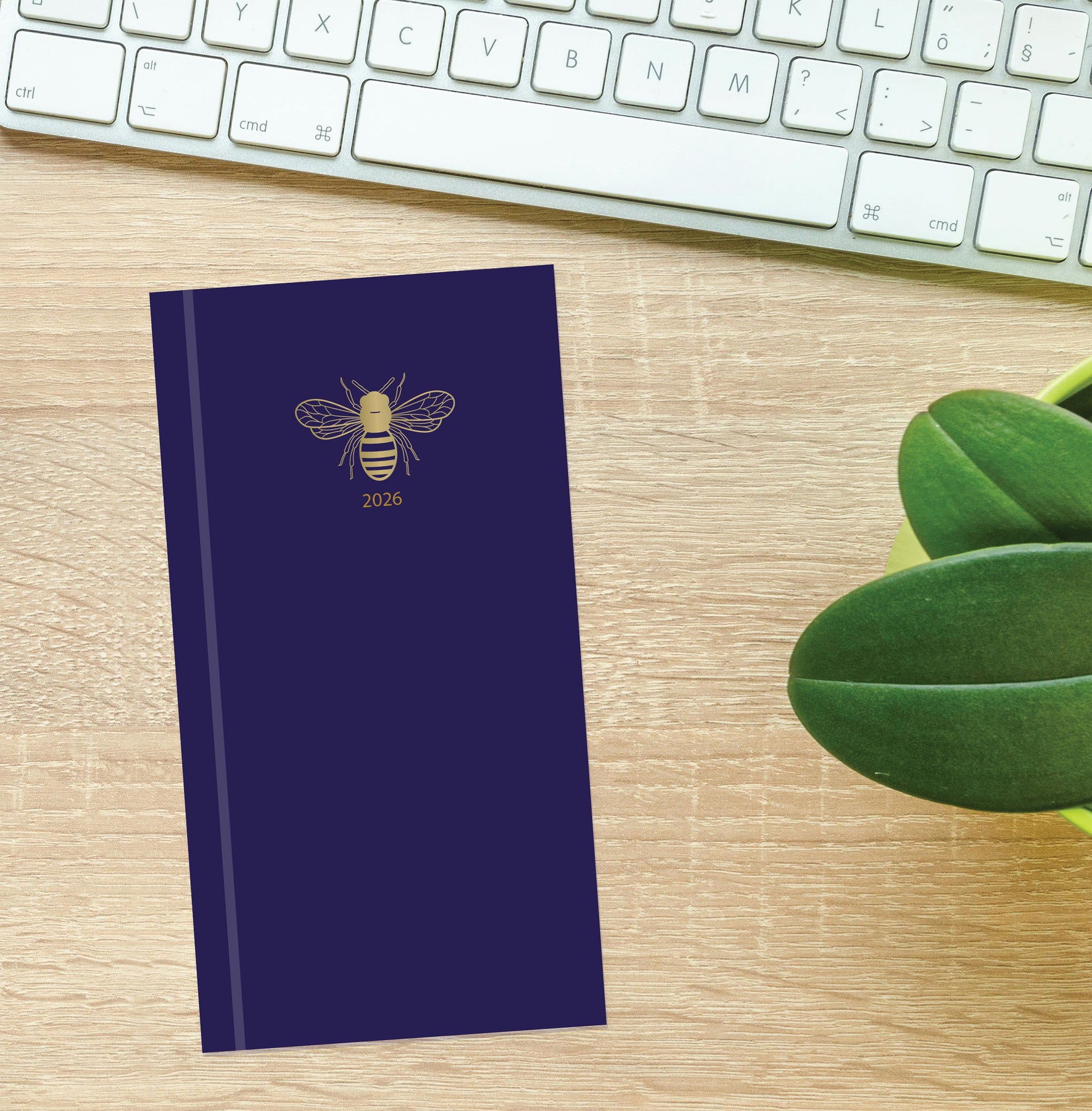 The elegant Sky & Miller Bee Slim Diary for 2026 features a striking cover design. This is perfect for those needing a week-to-view style diary small enough to slip into a pocket or handbag.