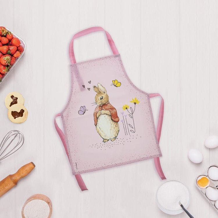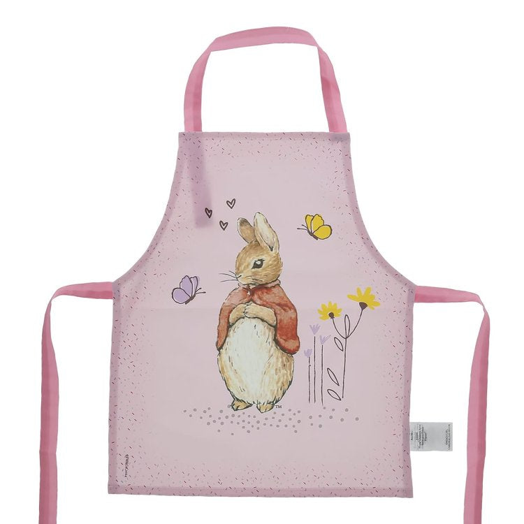 Introducing the delightful Flopsy Bunny apron, designed to make every cooking or crafting adventure a memorable one. Crafted with a super soft, wipeable fabric, it ensures easy clean-up, while the Velcro fastening on the neck tie offers extra safety and comfort for your little one. This charming apron not only features beloved Beatrix Potter illustrations but also comes elegantly presented with a branded gift hanger and gift hangtag, making it a perfect present for any occasion.