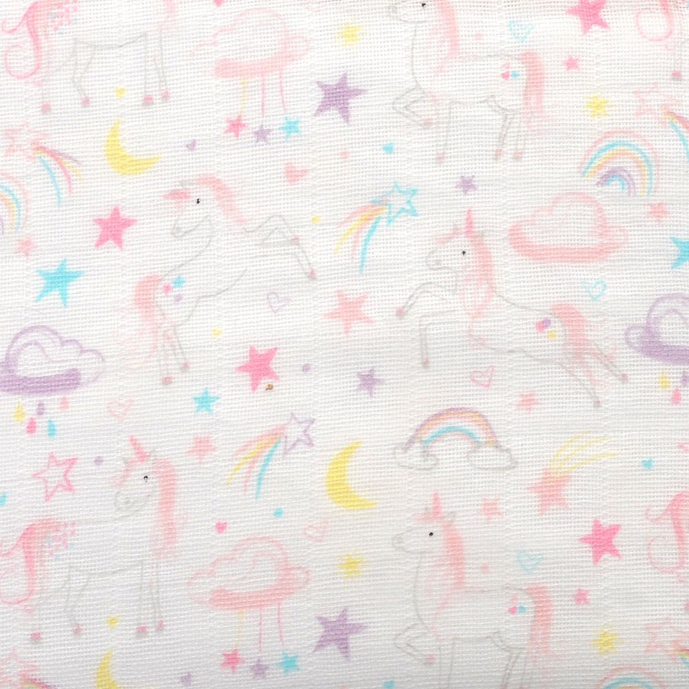 Muslin is 80cm x 80cm. Highly absorbent and fast drying. Perfect for multiple uses including comfort blanket, burp cloth or bib!