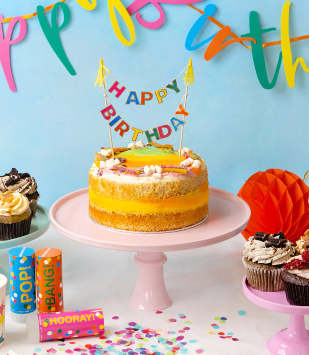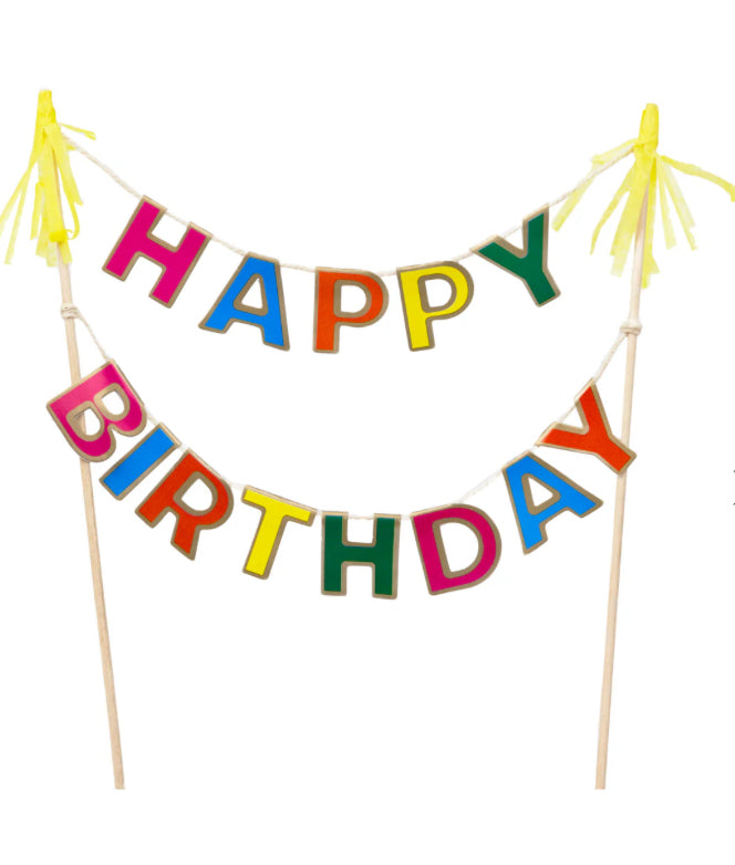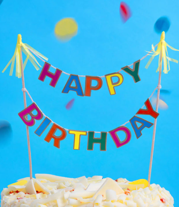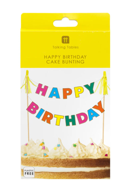This multi-coloured Happy Birthday bunting topper will jazz up any cake. Suitable for all ages and designed to be used again and again.