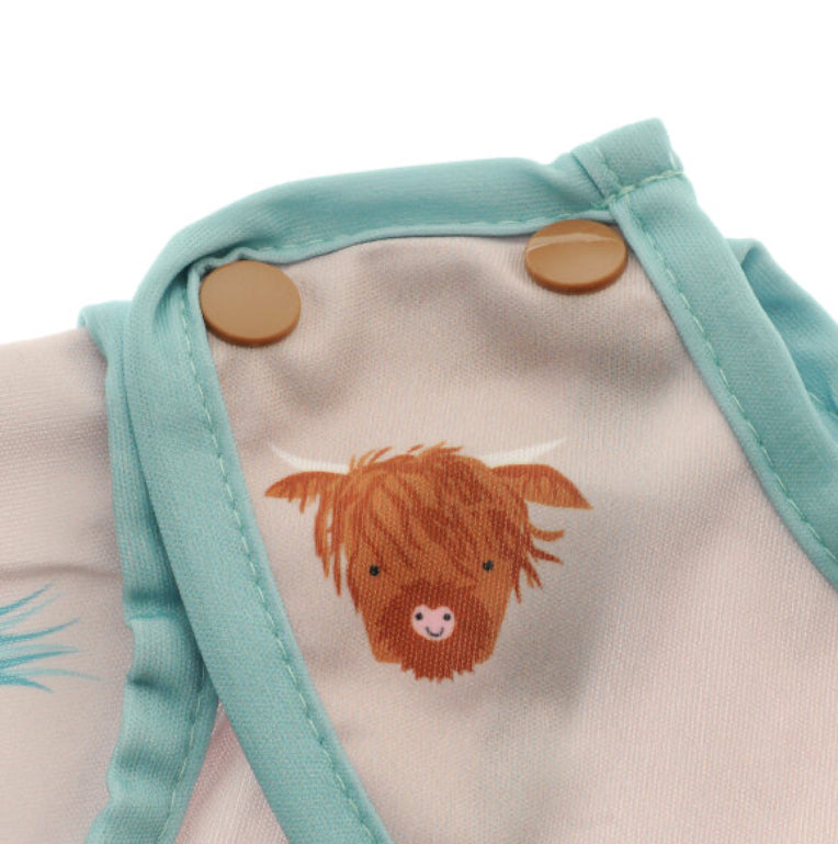 Cover your little one’s clothes with this Highland Cow design long sleeve bib.