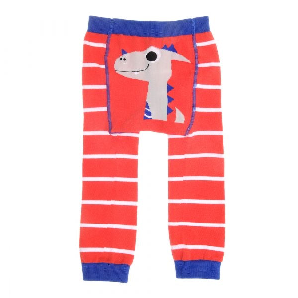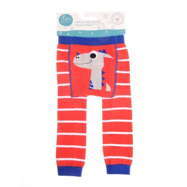 Stretchy and soft, red and white striped baby leggings featuring Dino Smino on a vibrant red background. Designed by Stripey Cats, these funky leggings look great and keep your little wriggler warm, gently stretch to hug your baby with no material slacking to get in your baby’s way