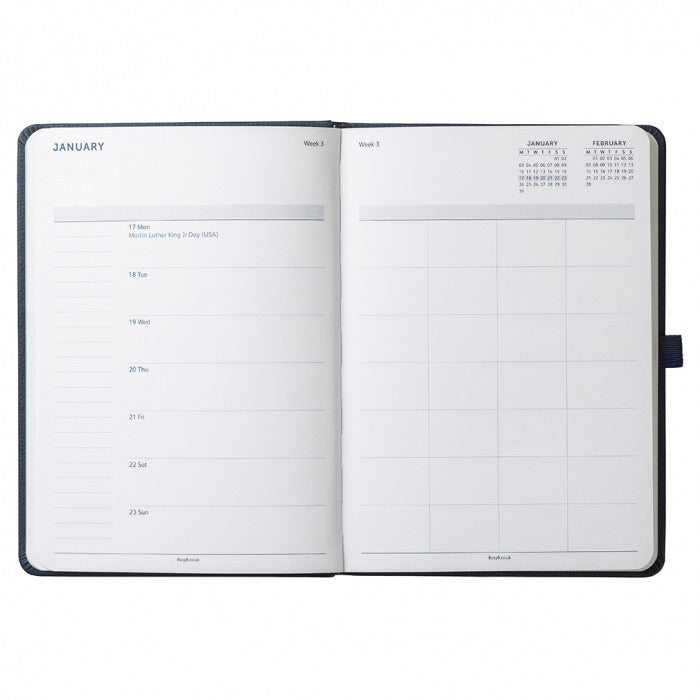 The ultimate family diary with space to organise five schedules, it's big enough for everyone's plans, yet pops neatly into your bag. Also features two handy pockets, year planners and a birthdays section. The cover is made of faux leather and features a debossed gold foil text and debossed logo. This diary runs from January to December 2022.
