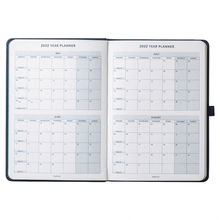 There are pages to keep a note of important numbers and contacts, a handy pen loop and elastic closure to keep everything together. This diary runs from January to December 2022.