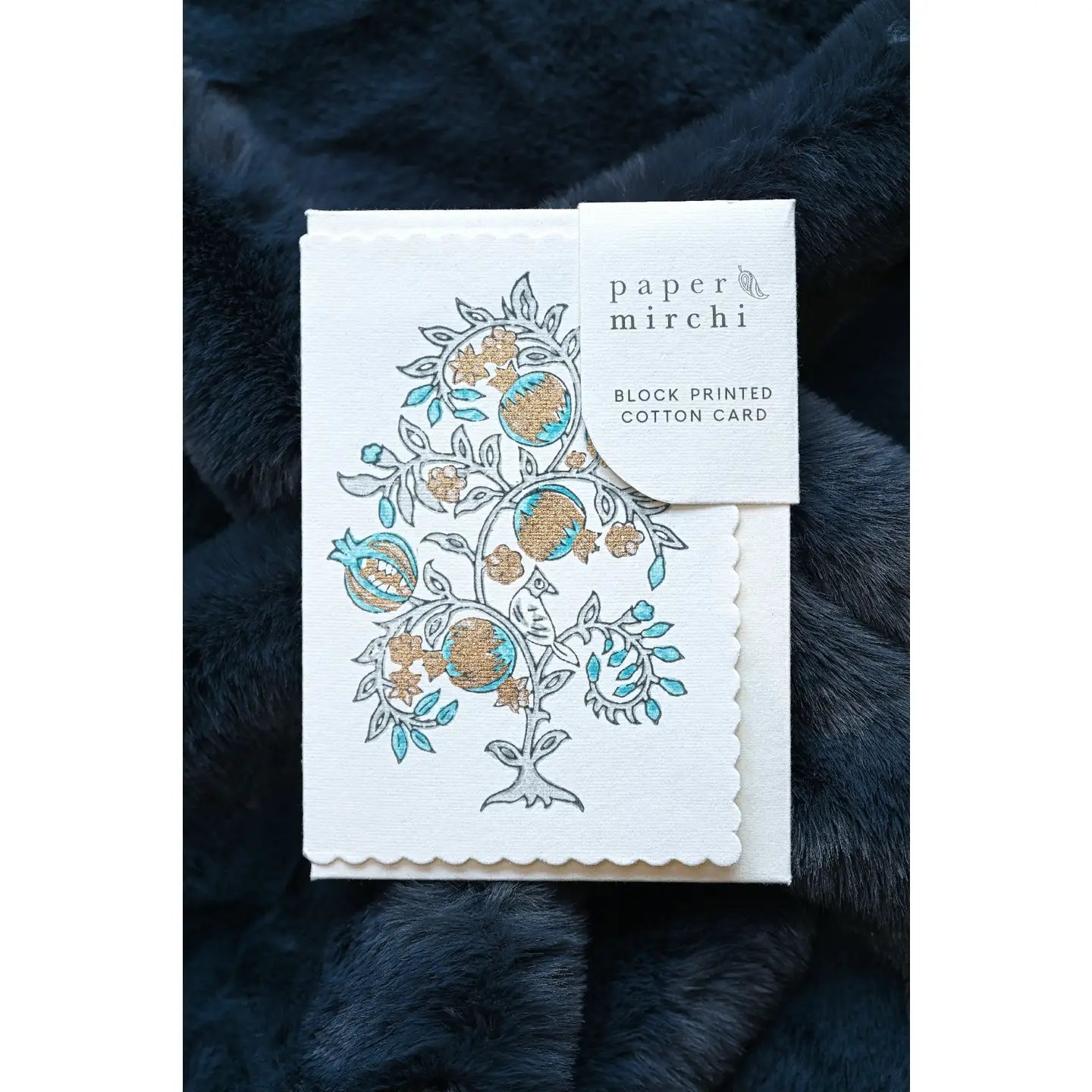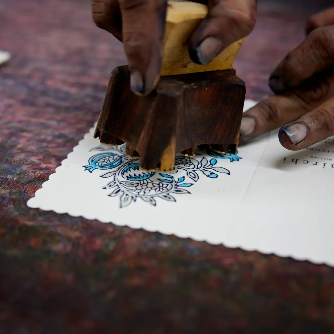 Our new range of luxury block printed greeting cards is a real delight for any stationery lover. Each card is hand block printed by a skilled artisan on luxurious tree-free 250gsm cotton cardstock and is accompanied by a luxury peel and seal envelope which is hand block printed in the matching on the reverse for understated appeal. No two cards are the same, making them truly unique. The card and envelope are neatly held together with a tree-free belly band. The card can be easily framed to become a beautiful ornament or keepsake.