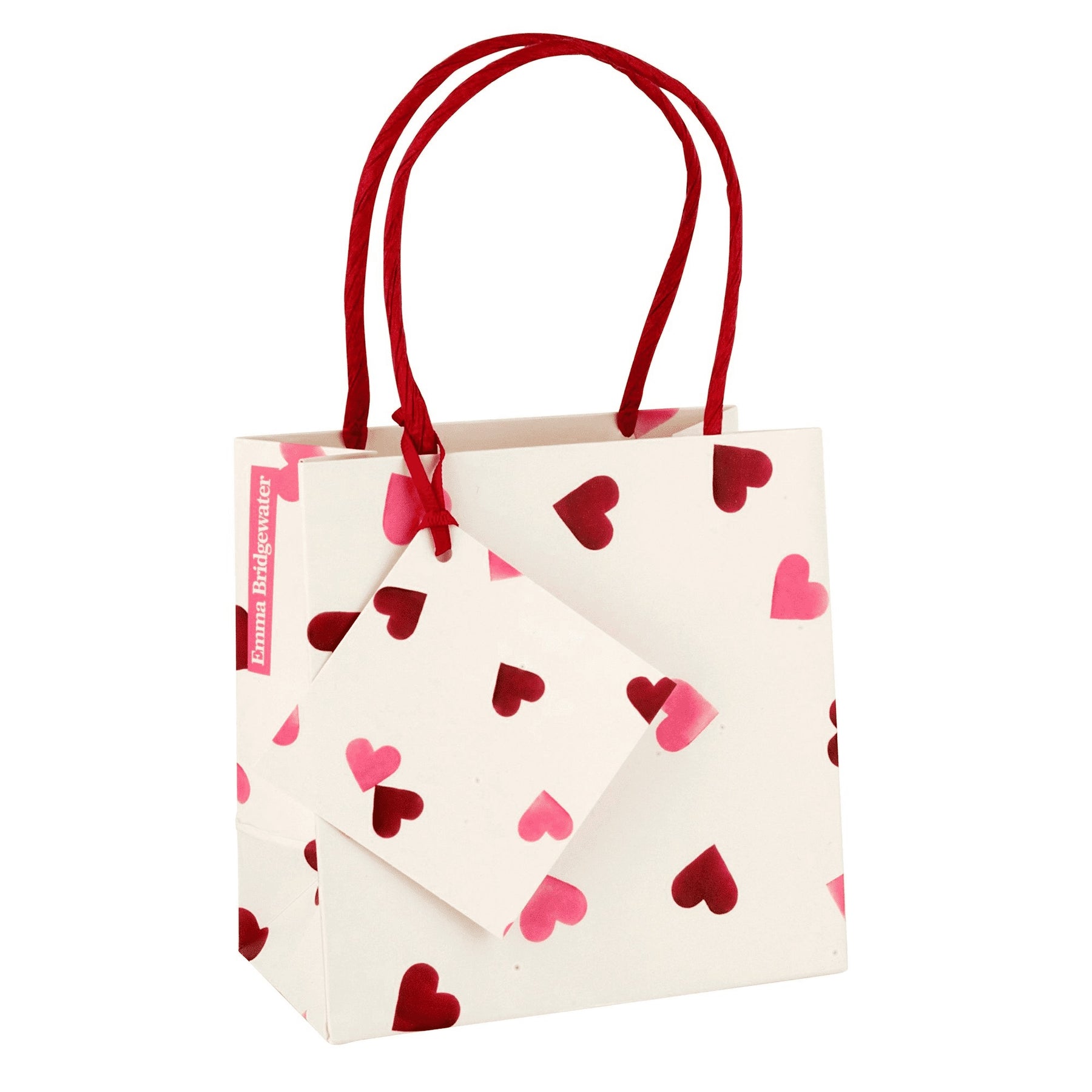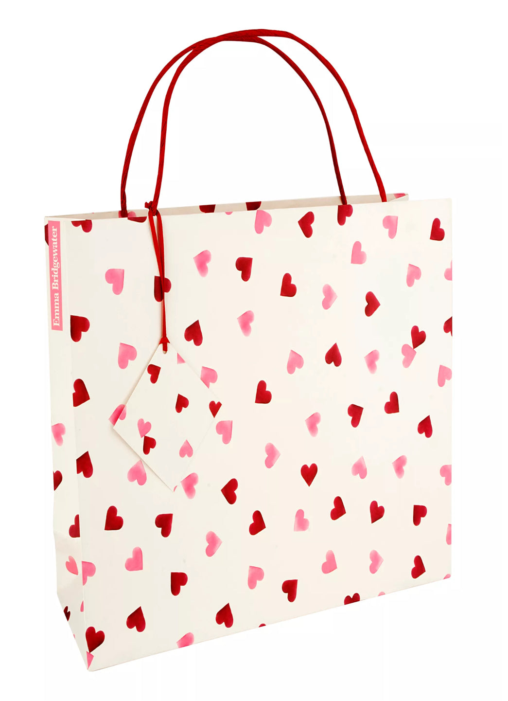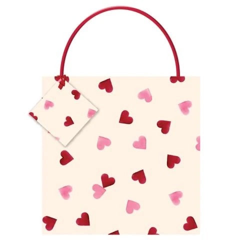 These traditional Emma Bridgewater bags feature her popular hearts motif. Created in classic Emma Bridgewater block-print style, these bags are a delightful way to present a gift to a loved one on any special occasion.