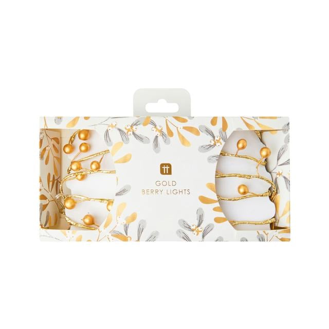 Bring the outside in and light up any room with these Gold Berry Branch Lights by Talking Tables. Use these eye-catching LED lights to create an elegant table or as decor for your mantel. These lights measure 2m (6.5ft) in length with 40 warm white LED lights.