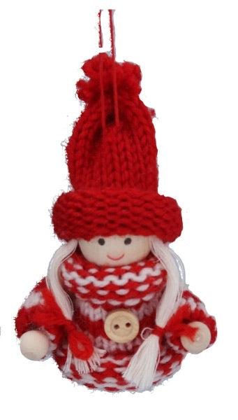 Knitted Red Scandi Girl Decoration