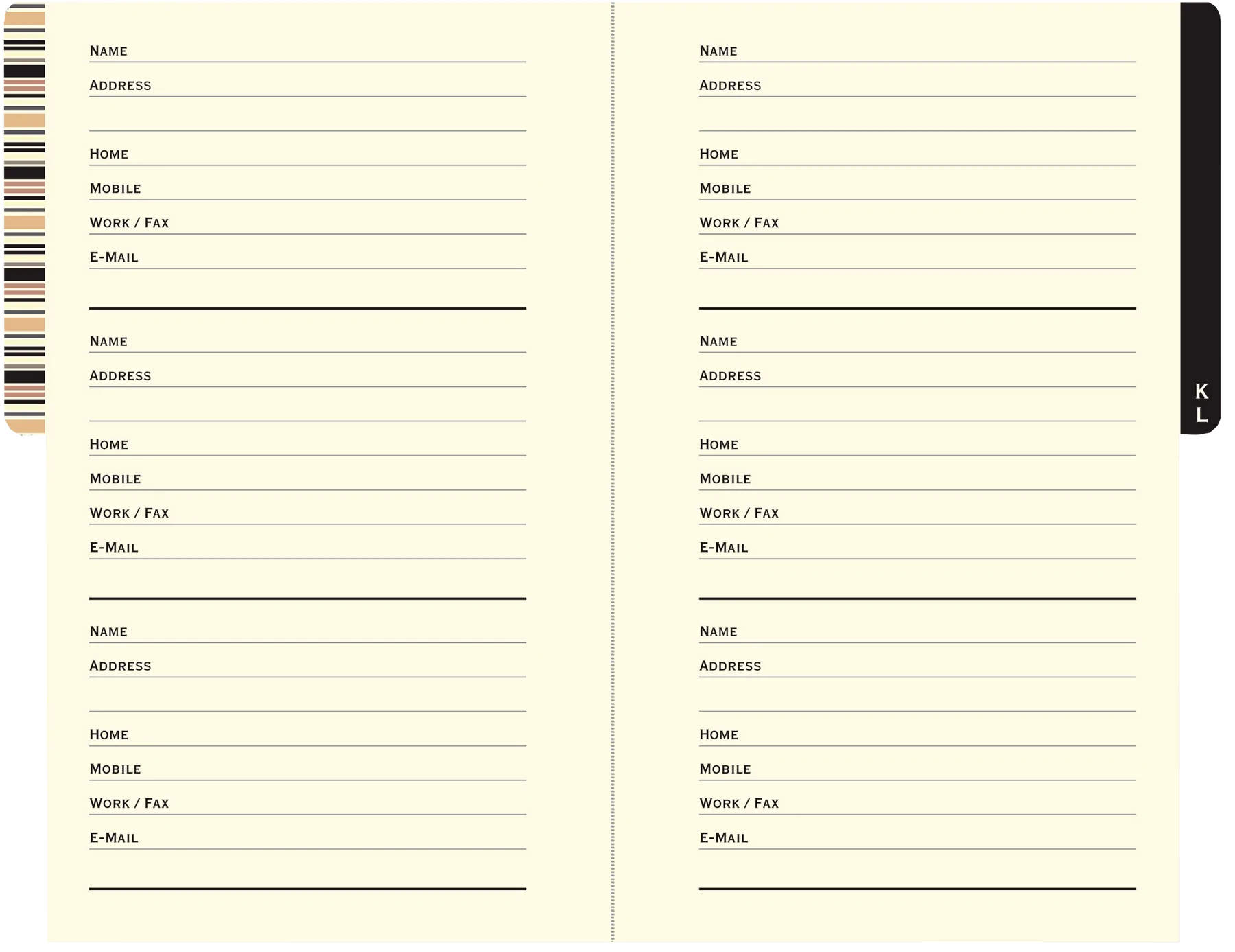Pocket-sized personal address book has space for more than 400 contacts.