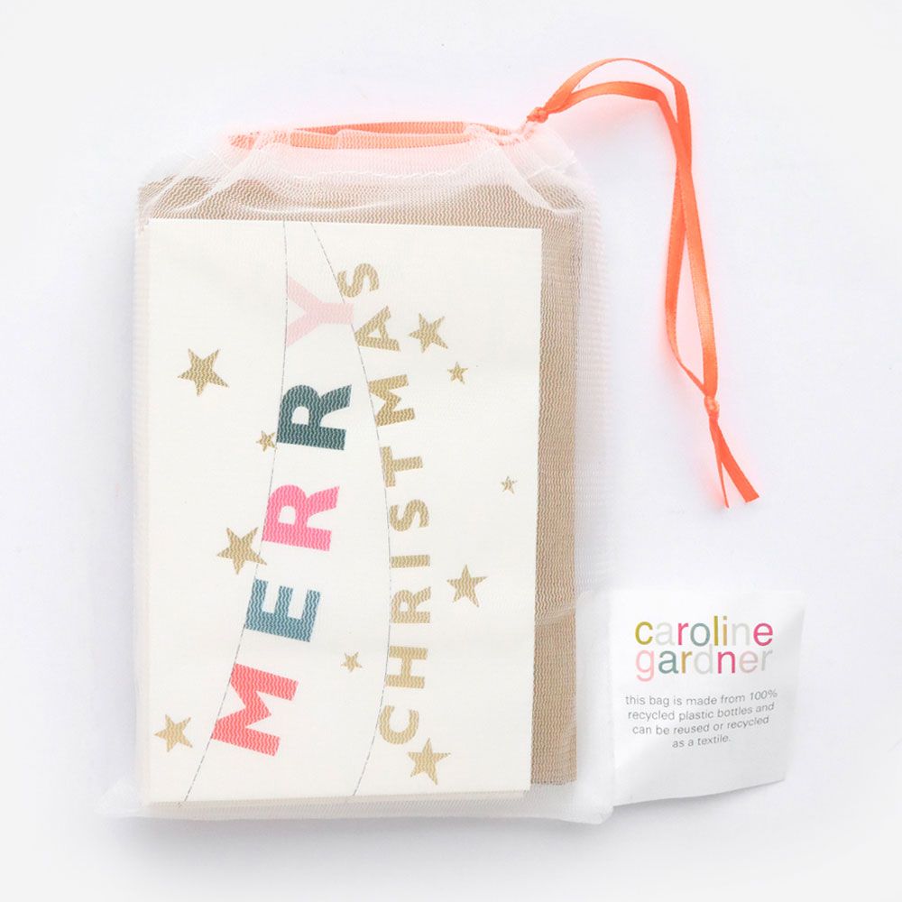 Festive packs featuring 10 cards and 10 kraft envelopes, finished with gold foil and supplied in our eco-pouch. The cards have been printed with the festive message inside 'merry Christmas and a happy new year'.