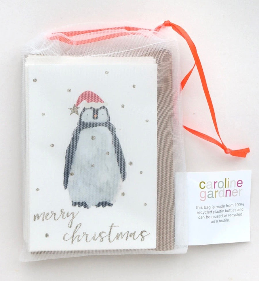 This pack of 10 mini Christmas cards features a lovely Christmas design and a showering of gold eco glitter. These fun and festive cards with luxury finishes are packaged in our environmentally friendly bags made of recycled bottles, that have replaced the cellophane this year!