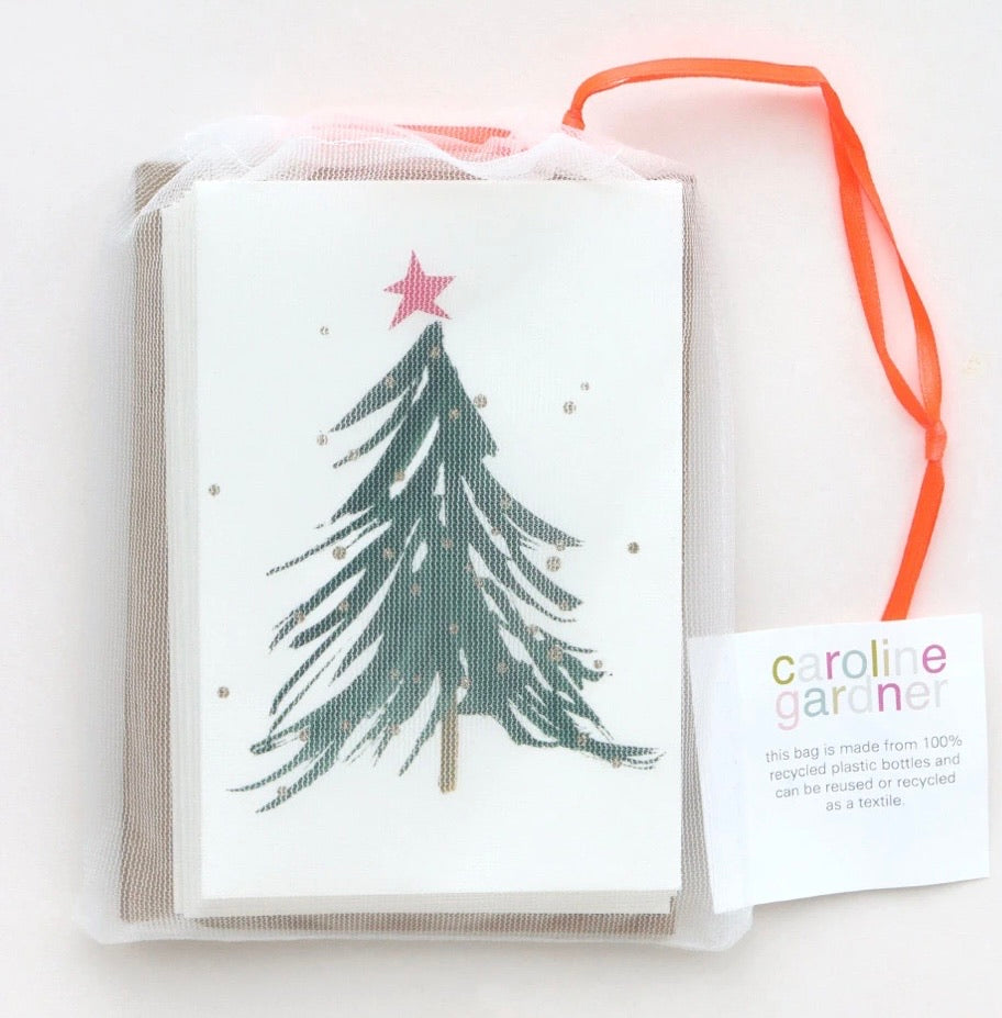 This pack of 10 mini Christmas cards features a lovely Christmas design and a showering of gold eco glitter. These fun and festive cards with luxury finishes are packaged in our environmentally friendly bags made of recycled bottles, that have replaced the cellophane this year!