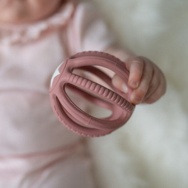 Teether Ball Pink is perfect for teething as it is made from gum-soothing BPA free silicone, perfect for little hands to hold. Suitable from 3m+