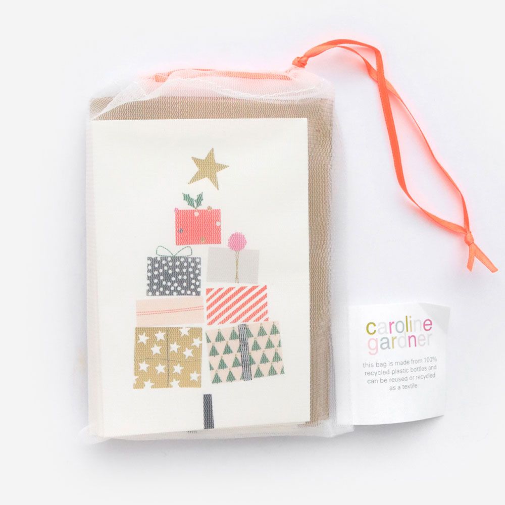 Festive packs featuring 10 cards and 10 kraft envelopes, finished with gold foil and supplied in our eco-pouch. The cards have been printed with the festive message inside 'merry Christmas and a happy new year'.