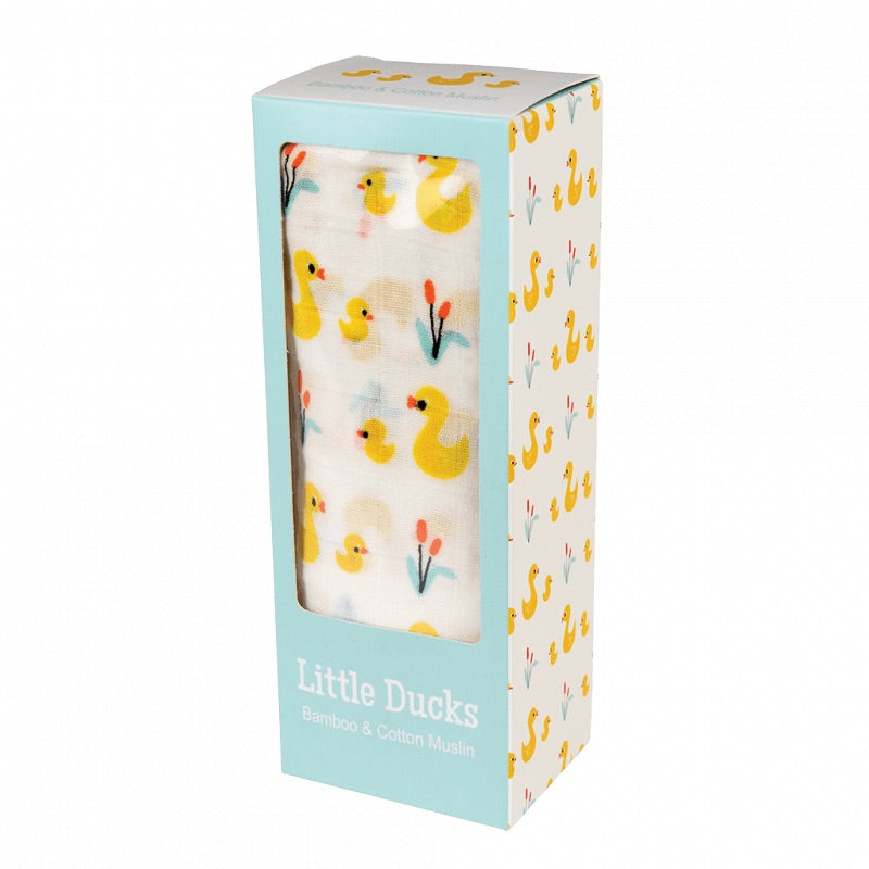 This Little Ducks swaddling blanket is cute and multi-functional. You can use this bamboo and cotton muslin as a cot sheet, burping cloth or feeding cover too!