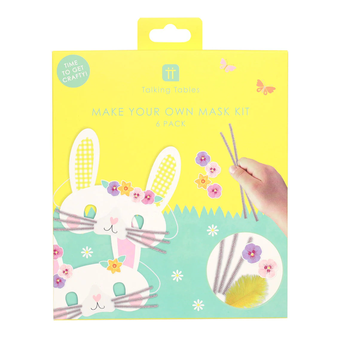 Entertain the kids this Easter by making your own Easter Masks! Decorate a bunny rabbit, lamb or cute chick face shaped mask with the included stickers, pom poms, pipe cleaners and feathers. A fun indoor activity for kids whilst at home this spring. Not suitable for children under 3 years due to small parts. Makes 6 animal face shaped masks.